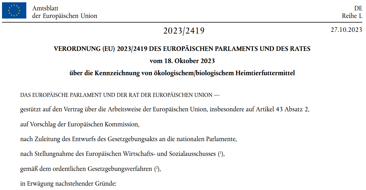 30.10.2023: Kennzeichnungsregeln für Bio-Heimtierfutter