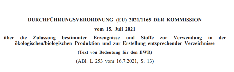 Mit der Durchführungsverordnung (EU) 2025/2501 zur Änderung der VO (EU) 2021/1165 (Durchführungsrechtsakt mit den Positivlisten) werden zwei weitere Verarbeitungshilfsstoffe für die Verarbeitung von Bio-Lebensmitteln zugelassen. Die Änderung wird ab dem 01.01.2026 wirksam. Ab diesem Zeitpunkt können Erbsen- und Kartoffelproteinextrakte als Verarbeitungshilfsstoffe zur Klärung von Fruchtsäften und Fruchtweinen (Weine aus anderen Früchten als Weintrauben, einschließlich Apfel- […]