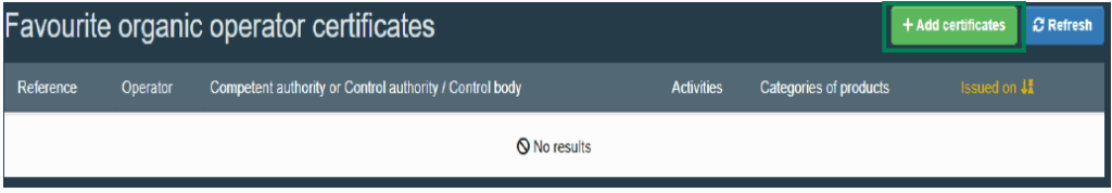 Sie können Bio-Zertifikate über den Button „Zertifikate hinzufügen“ zu Ihrer Liste hinzufügen.