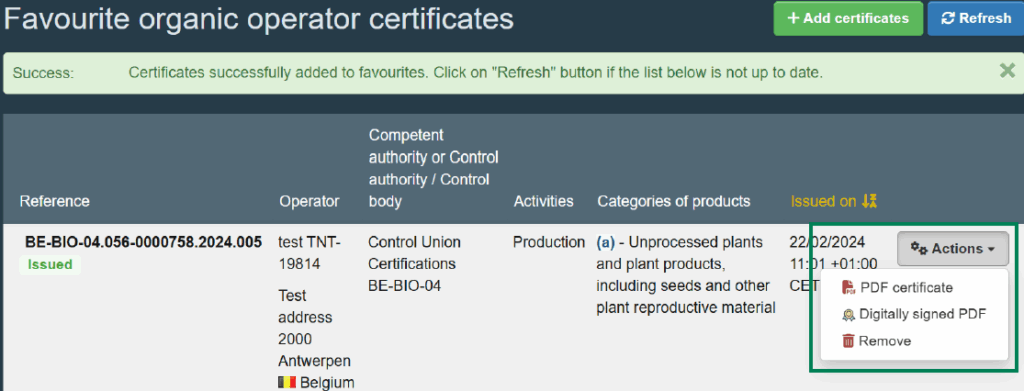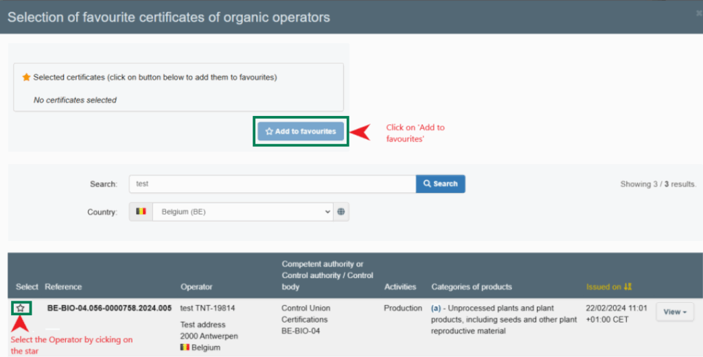 - Ihre Bio-Zertifikats Favoritenliste