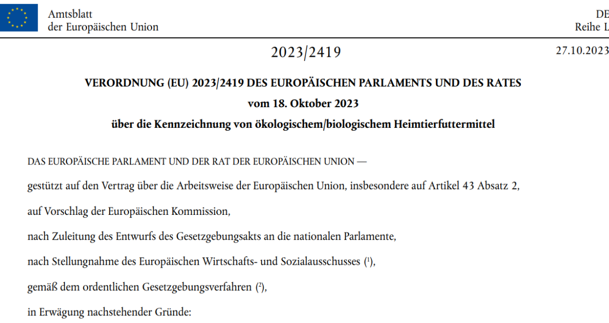 30.10.2023: Kennzeichnungsregeln für Bio-Heimtierfutter